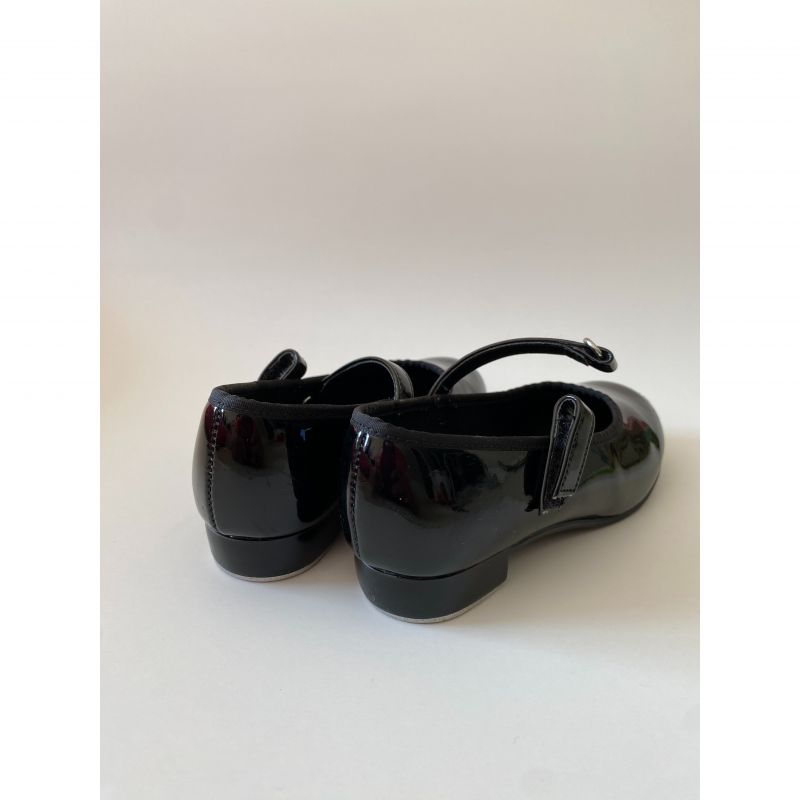 These well-loved tap shoes have a number of scratches along the front, sides and back from enthusiastic tapping but still have a lot of life in them for a young tapper. The screws are still securely on and the tap plates are in excellent condition.